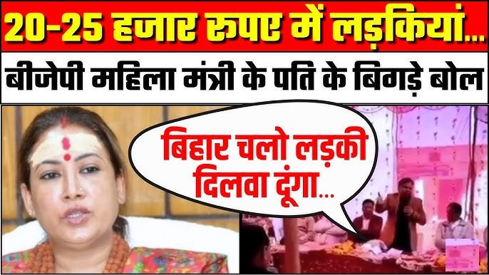 बता दें सोशल मीडिया पर वायरल हो रहे एक वीडियो में मंत्री के पति एक अविवाहित कार्यकर्ता को संबोधित करते हुए यह कहते नजर आ रहे हैं कि ‘लड़कियों की कोई कमी नहीं है’ और ‘बिहार में 20–25 हजार रुपये में शादी के लिए लड़कियां मिल जाती हैं’. इसी अभद्र टिप्पणी को लेकर जमकर बवाल हो रहा है.